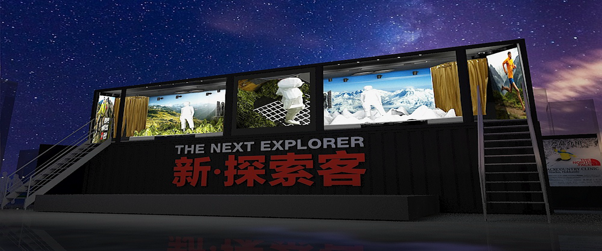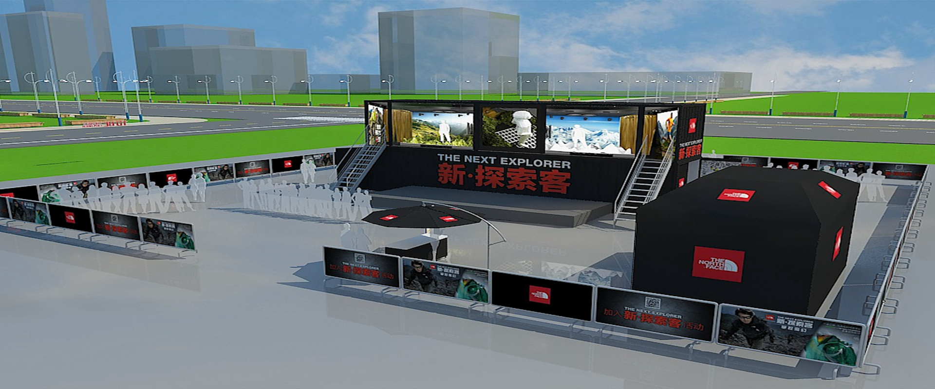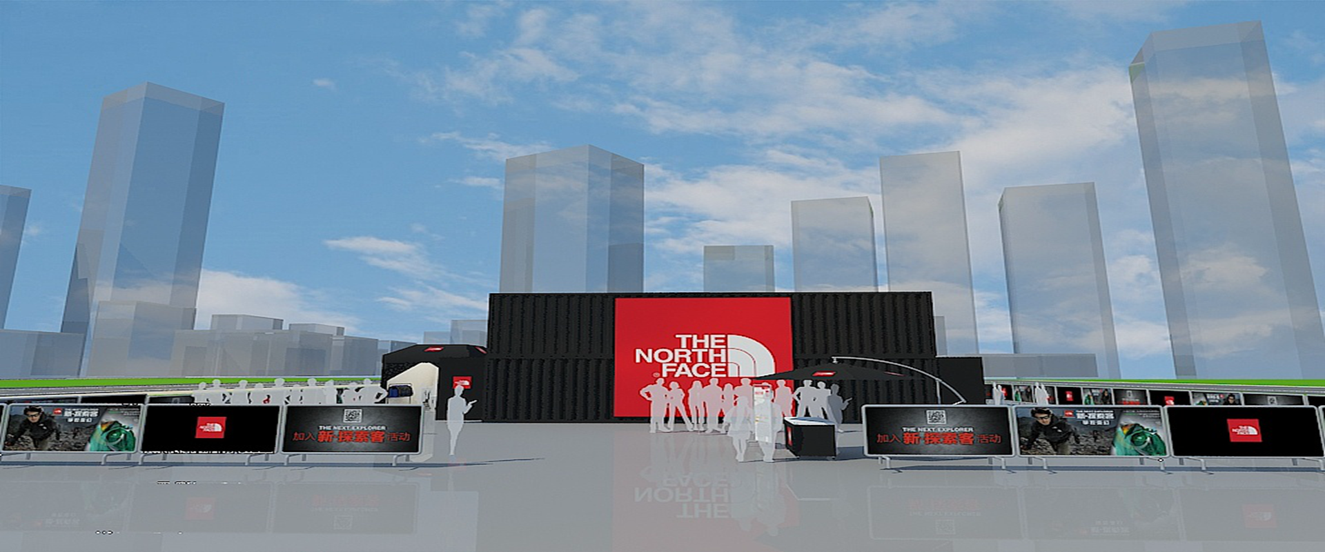 本次設計以品牌名字出發,結合品牌的視覺符號打造戶外概念,整體突出主題,引人注意。
